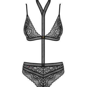 Einzigartiger Spitzen-Body in Form eines weichen BHs mit Schmuckdetail (nickelfrei), eines bequemen ComfyCut-Slips und eines abnehmbaren Neckholders, der bis zum Bauch verlängert ist. Ein mehrstufiger Verschluss und verstellbare Träger sorgen für eine perfekte Passform. Ein verstellbarer Verschluss am Slip dient der Befestigung des verlängerten Neckholders. Zartes und elastisches Material.