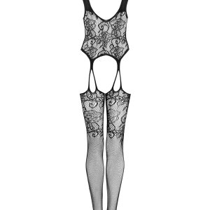 Scharfer Bodystocking aus zartem und elastischem Strickmaterial, das Ihre Körperform betont. Der Schnitt ist eine Kombination aus Corsage und Strümpfen mit sinnlichem Blumenmuster. Mit verführerischem Rückenausschnitt und offenem Schritt.