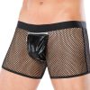 Sexy Boxershorts aus schwarzem Wet-Look-Material und transparentem Netz. Mit Öffnung auf der Vorderseite mittels eines Hakens. Nickelfrei!