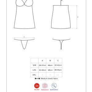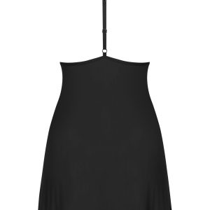 Elegantes Chemise mit Spitzen-Cups und glänzendem Schmuckelement. Die verstellbaren Kreuzträger sind am Rücken mit einem romantischen Guipure-Herz verziert. Mit breitem Spitzensaum und einem passenden String. Schönes und elastisches Multistretch-Material.