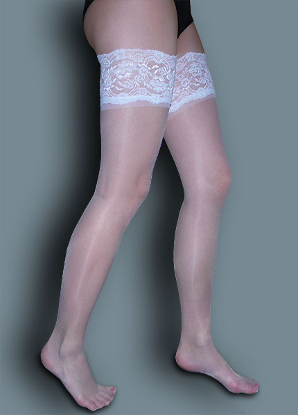 Klassische, halterlose Strümpfe in weiß