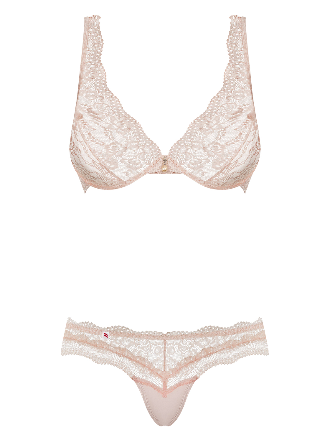 Sinnliches Dessous-Set aus feiner Spitze in pearl. Ein BH mit Bügel-Cups, verstellbaren Trägern und Verschluss für eine perfekte Passform. Mit einem schönen Perlenschmuckelement zwischen den Cups. Dazu ein passendes Spitzenhöschen. Weiches und elastisches Multistretch-Material.