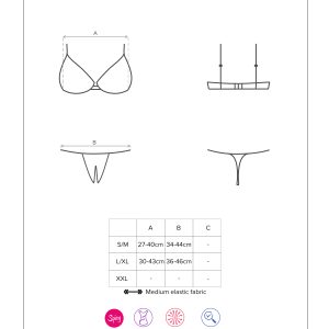 Verführerisches Spitzen-Set: Ein bügelfreier und offener BH mit elastischen Riemchen und zarter Spitze sowie verstellbaren Trägern und Rückenverschluss für eine perfekte Passform. Dazu ein passender String mit offenem Schritt und tollem Design. Feines und elastisches Material.