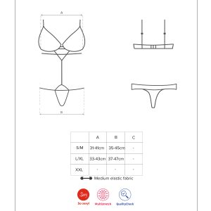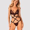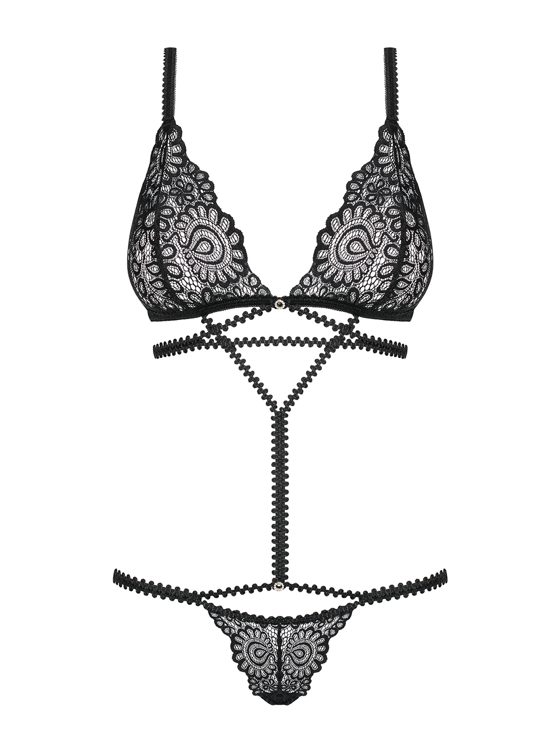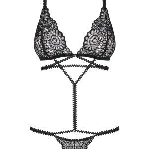 Außergewöhnlicher Body mit eleganten Spitzen-Cups und elastischen Riemchen. Mit zwei verstellbaren Trägern und Rückenverschluss für eine perfekte Passform. Zwei glänzende Schmuckdetails setzen einen luxuriösen Akzent.