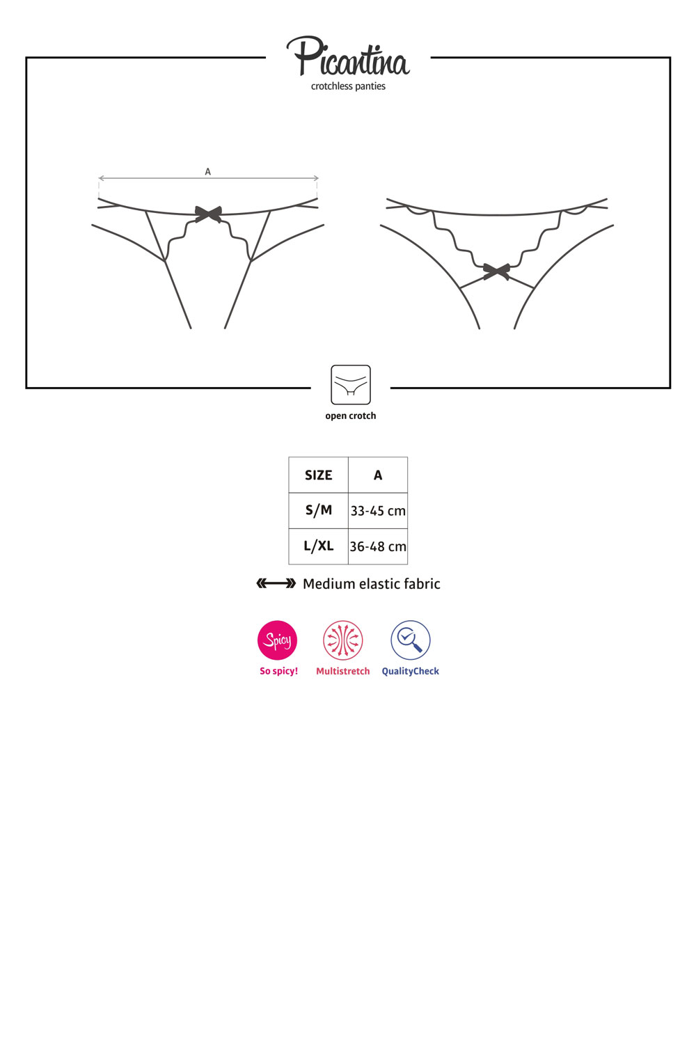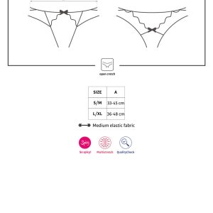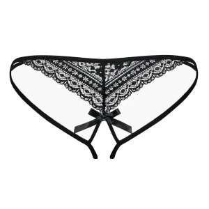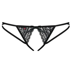 Verführerischer String mit offenem Schritt und Spitzenverzierungen. Schönes und elastisches Material.