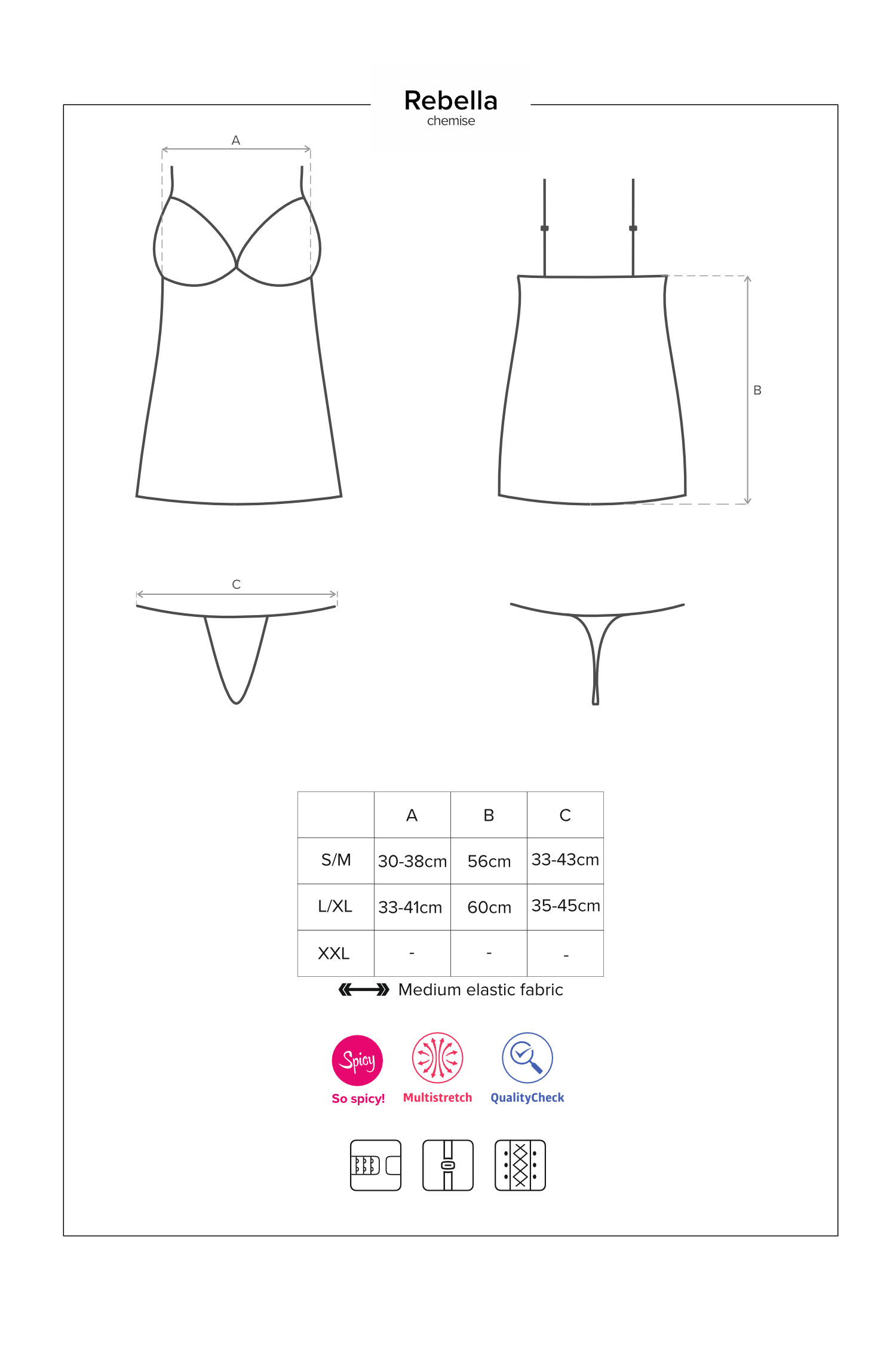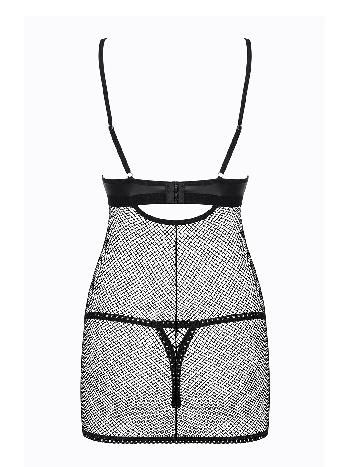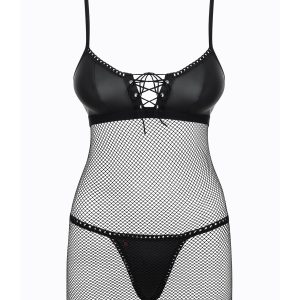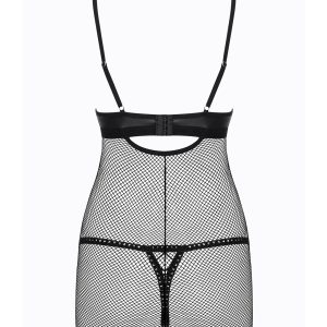 Einzigartiges Chemise aus weichem Multistretch-Material mit einer Schnürung an der Brust und grobmaschigem Netzmaterial unterhalb der Brust bis zum Saum. Ein mehrstufiger Rückenverschluss und verstellbare Träger sorgen für eine perfekte Passform. Passender String inklusive.