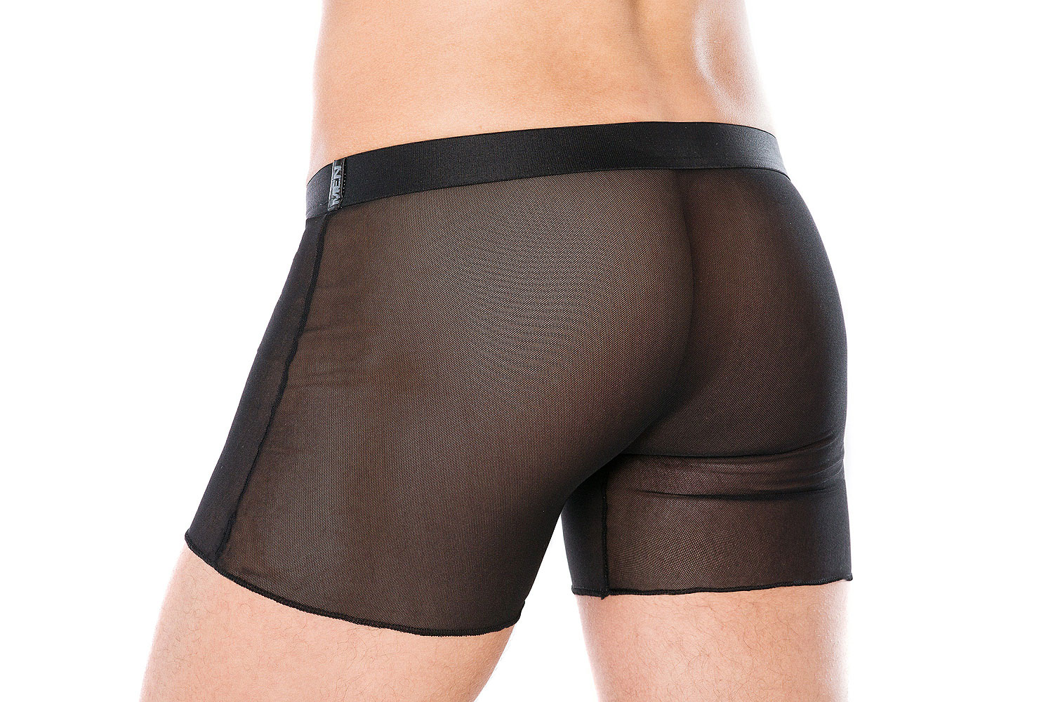 3-teiliges Set: Boxershorts, Kragen und Manschetten. Boxershorts mit Reißverschlussöffnung auf der Vorderseite. Das gesamte Set kombiniert schwarzes, transparentes Material und weißes Wet-Look-Material.